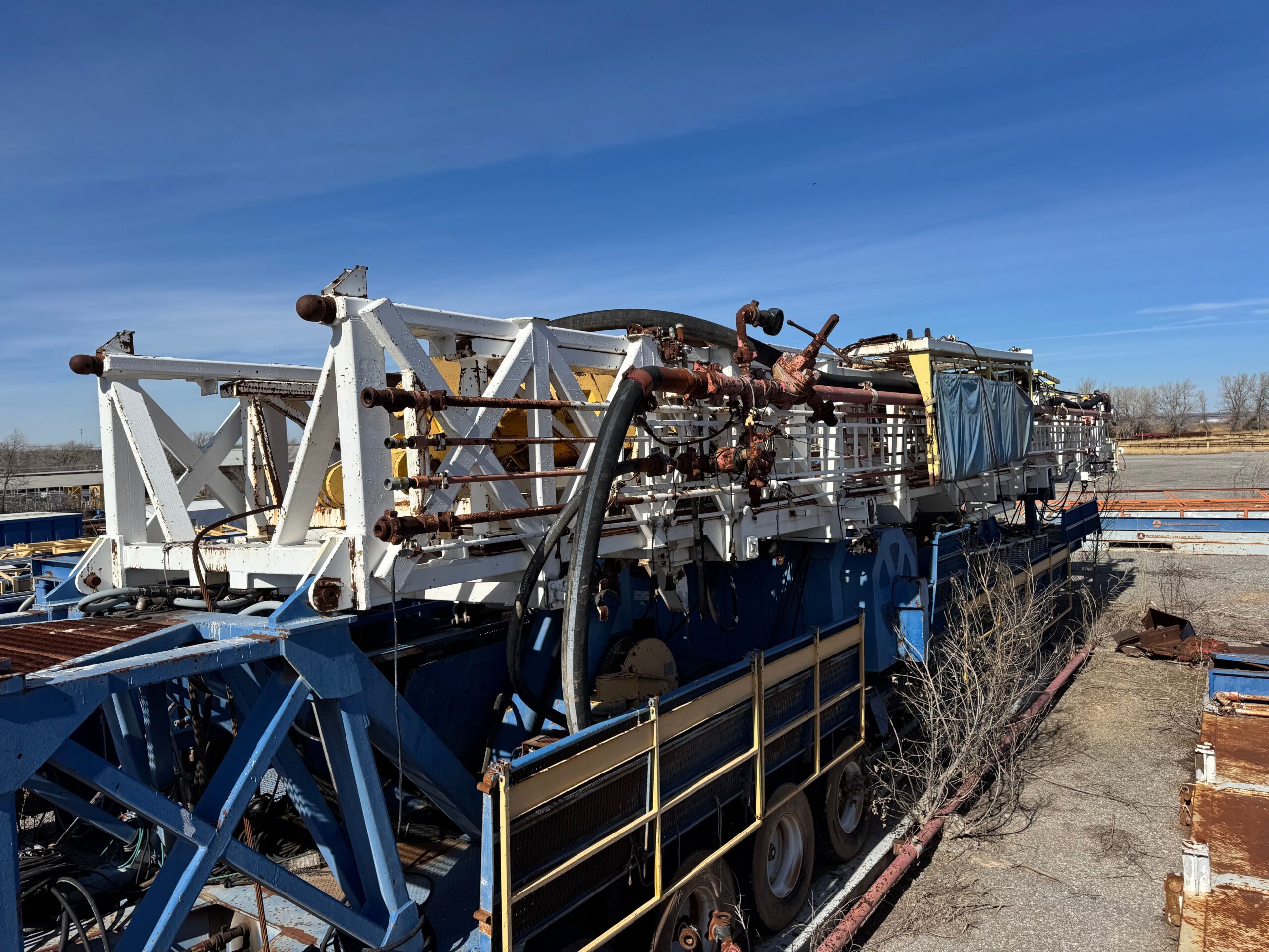 Auxiliary Equipment: 500 Bbl water, tank, 14,000 gallons fuel tank, 100 Bbl trip tank, (2) Braden PD12C Hyd. Hoists, IR K5U Air Hoist, Hawk 550-H Pipe Spinner, Mellennium Surveyor Wireline Machine.